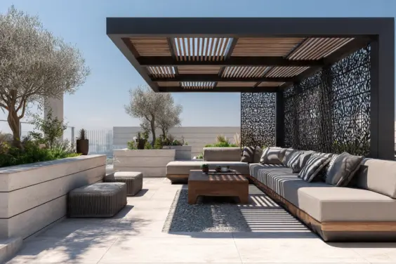 Architectural outdoor spaces in Dubai, designed for longevity, comfort, and modern style.